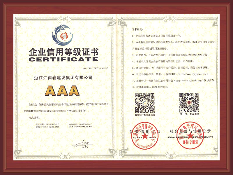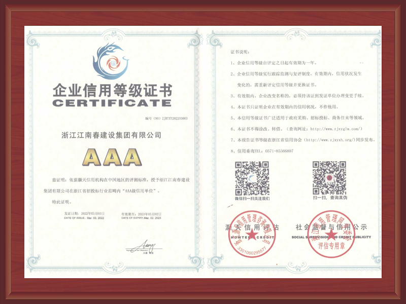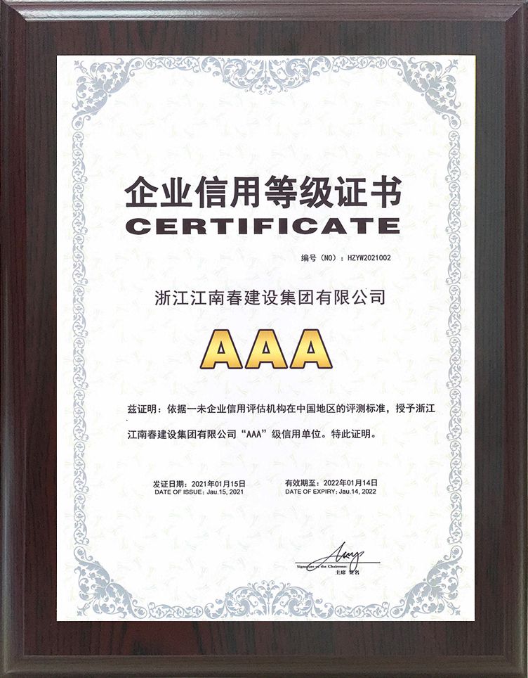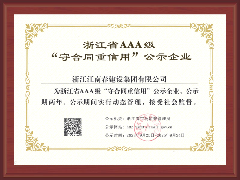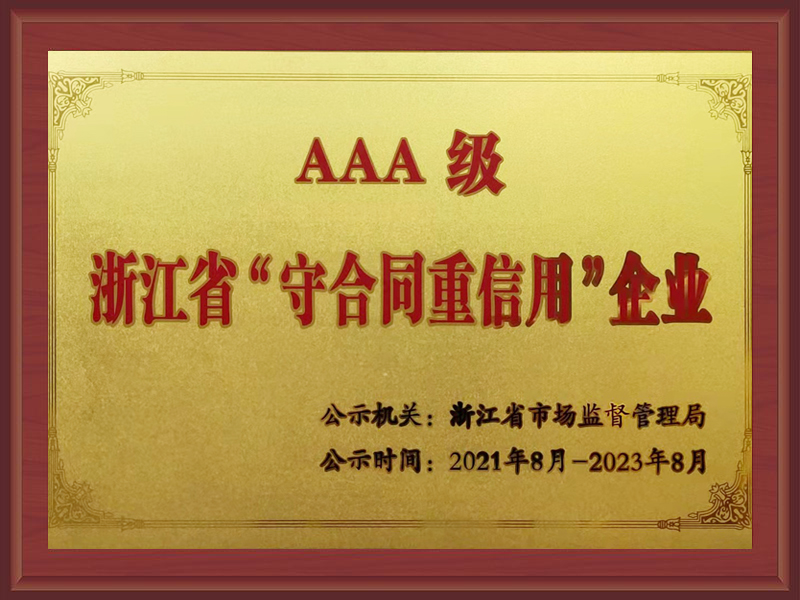 浙江省AAA級(jí)“守合同重信用”公示企業(yè)
