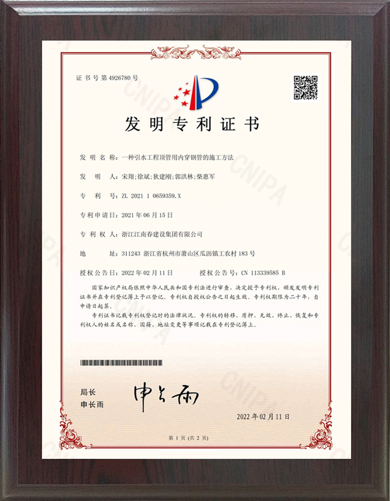 一種引水工程頂管用內穿鋼管的施工方法專利證書